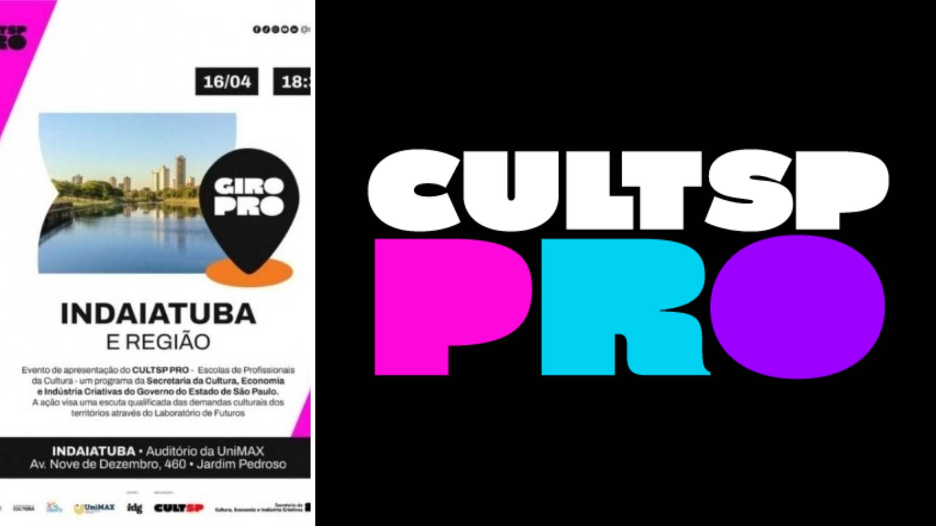 O Centro Universitário Max Planck (UniMAX) será palco, no dia 16 de abril, às 18h30, do GIRO PRO, ação do programa CULTSP PRO – Escolas de Profissionais da Cultura, promovido pela Secretaria da Cultura, Economia e Indústria Criativas do Estado de São Paulo. A iniciativa conta com a parceria da Prefeitura de Indaiatuba, por meio da Secretaria Municipal de Cultura, e tem como objetivo ampliar o acesso à formação e qualificação profissional no setor cultural e criativo.